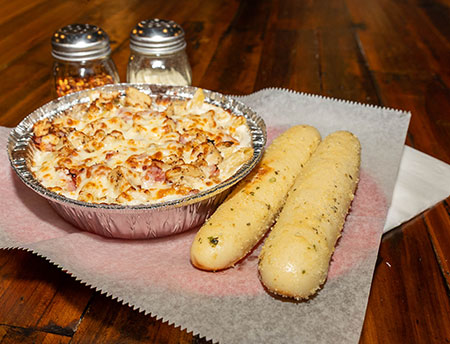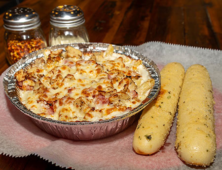 Chicken, Ham, Savory Alfredo Sauce Topped With Mozzarella Cheese.
