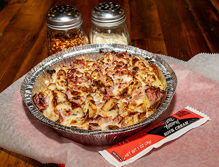 Baked Potato Topped With Butter, Chicken, Ham, Cheese , and Ranch.