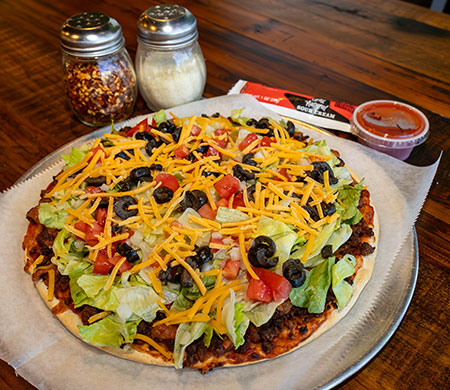 Taco-Seasoned Meat, Cheddar Cheese, Lettuce, Tomato, Onions, Black Olives